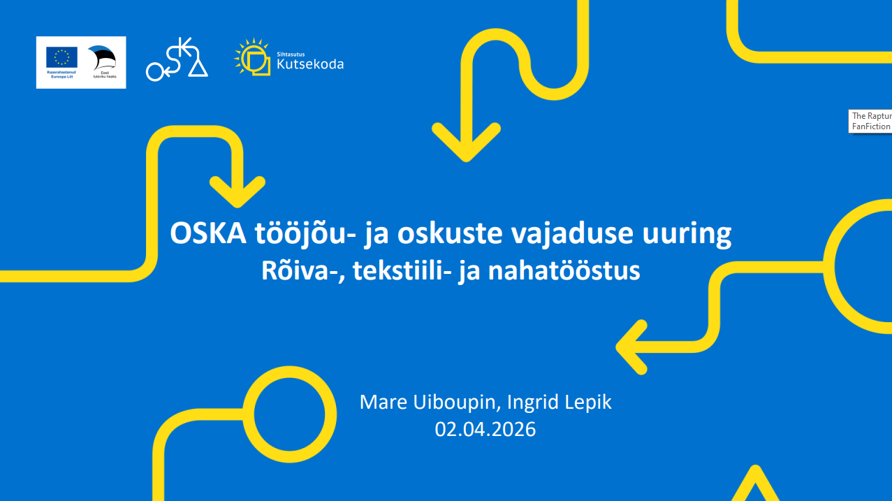 OSKA rõiva-, tekstiili- ja nahatööstuse (RTN) valdkonna uuring otsib vastust küsimusele, milline on valdkonna tööjõu- ja oskuste vajadus lähema kümne aasta jooksul, ning esitab ettepanekud, kuidas tööjõu- ja oskuste vajadust täita.