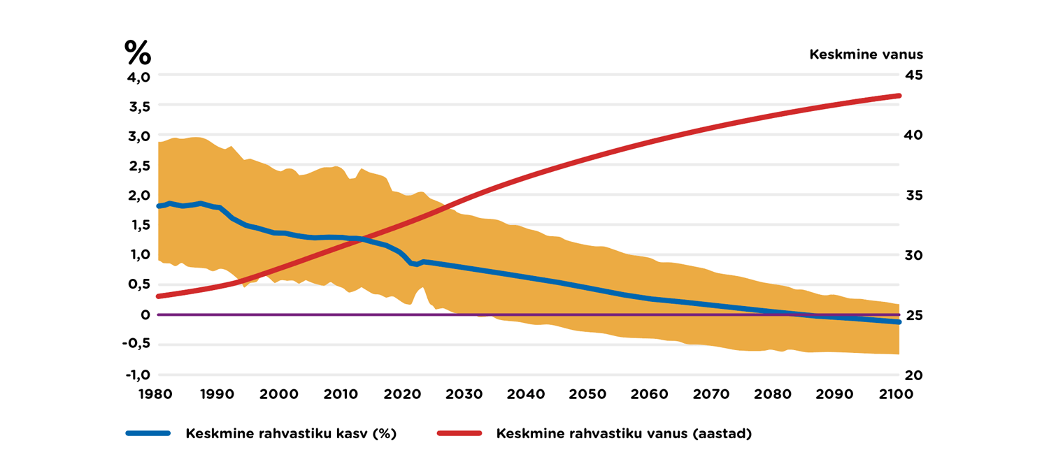 Eesti rahvaarv väheneb ajavahemikus 2025–2100 prognooside kohaselt 518 700 inimese võrra, mis tähendab ligi 39% langust. Veelgi järsem on kahanemine naaberriikides: Lätis prognoositakse rahvastiku vähenemist umbes 50%, Leedus koguni 57%. Võrdluseks väheneb Soome elanikkond hinnanguliselt 18%, Norras 4% ja Taanis 2%. Samas on riike, kus rahvaarv kasvab. Näiteks suureneb Monaco elanikkond prognooside järgi umbes 24%, Luksemburgis 10%, Rootsis ja Suurbritannias mõlemas ligikaudu 7%.